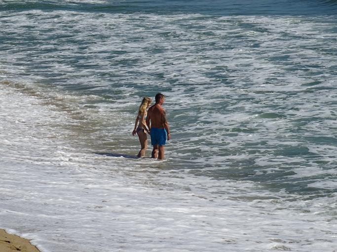 Keywords: sea sand waves couple beach water summer nature sun blue vacation coast holiday leisure outdoor sky happy relaxation romantic young people girl