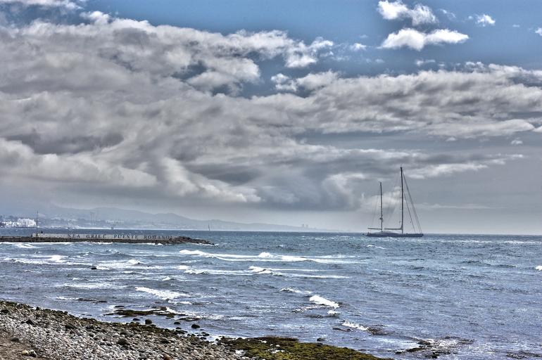 Keywords: sea sky landscape clouds beach nature boat horizon costa wind spain water marbella
