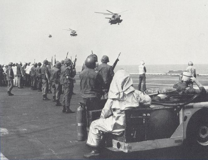 | Keywords: Sea Stallions approach USS Midway.jpg en Sea Stallions approach USS Midway during Operation Frequent Wind 29 April 1975 U S Navy photo http //www navysite de/cruisebooks/cv41-76/227 htm from the http //www navysite de/cruisebooks/cv41-76/index_018 htm USS Midway CV-41 1975-76 cruise book available at http //navysite de/cruisebooks/index html Navysite de USN 1975-04-29 Operation Frequent Wind Aboard USS Midway CV-41 PD-USGov-Military-Navy | ||||