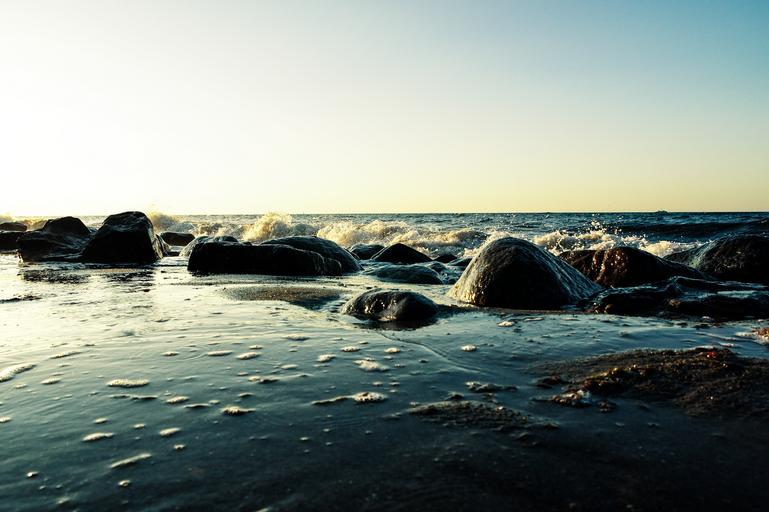 Keywords: sea stones rock surf baltic sea wave beach spray holiday ocean water nature landscape head blue horizon coast sea water lake