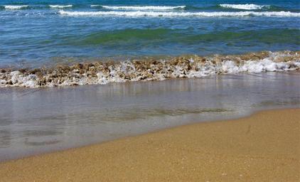Keywords: sea wave sand beach holiday spray wet water beach water mirroring blue surf turkey ocean coast nature water sports dynamic picturesque crest movement swell