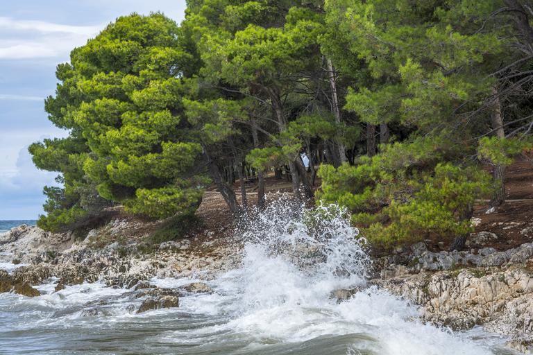 Keywords: sea waves trees water beach rocks horizon spray cliff wind blue landscape costa sassi