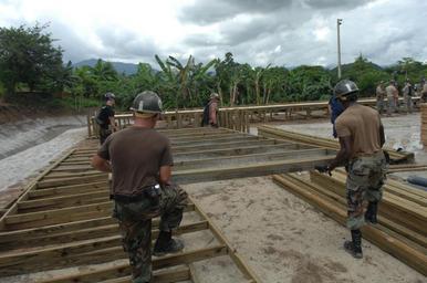 Keywords: Seabees working in Columbia DVIDS112686.jpg en Seabees embarked aboard the amphibious assault ship USS Kearsarge carry a framed-out wall that will be installed in a classroom being built as part of the humanitarian mission Continuing Promise 2008 Kearsarge is supporting the Caribbean phase of CP 2008 an equal-partnership mission between the United States Canada the Netherlands Brazil Nicaragua Panama Colombia Dominican Republic Trinidad and Tobago and Guyana 2008-08-29 https //www dvidshub net/image/112686 080829-N-+++++-001 2008-09-03 08 25 LOS ALPES CO PD-USGov-Military-Navy USS Kearsarge LHD-3 Images from DoD uploaded by Fæ |