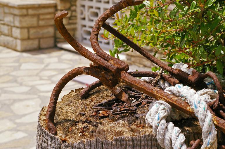 Keywords: seafaring anchor harness lines rope holiday maritime boot ship deco shipping stainless old rusted