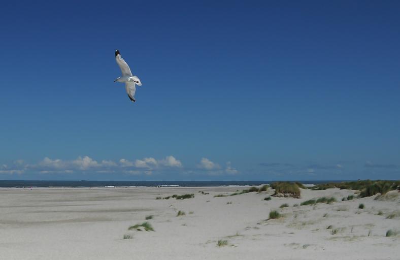 Keywords: seagull beach sky summer bird water sand dune flying coastline wings