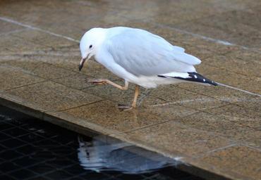 Keywords: seagull birds reflections water ground floors wildlife waterbirds white plumage gulls single alone isolated looking down fauna