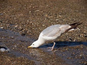 Keywords: seagull drinking beach coast summer grey sand bird gull