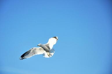 Keywords: seagull flying blue-sky flight day bird fly sky seabird