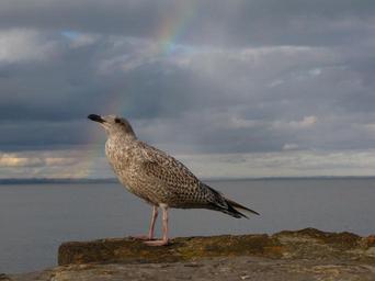 Keywords: seagull sea rainbow bird
