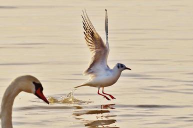 Keywords: seagull swan water lake constance animal world lake bird feather water bird plumage