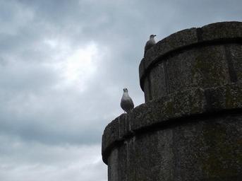 Keywords: seagull tower clouds watchmen bird