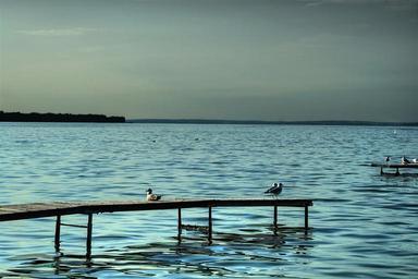 Keywords: Gulls seagulls occupying docks Pigeon Lake Alberta Canada