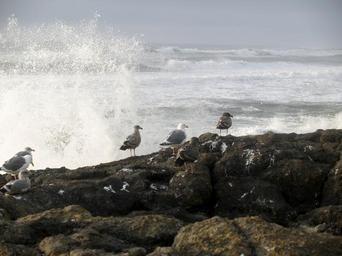 Keywords: seagulls birds waves pacific rocks water ocean shoreline coast seagull