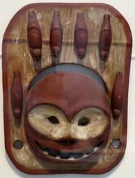 Keywords: Seal mask, Eskimo, early 20th century, carved wood, red and white pigments, whale ivory.JPG Seal mask Eskimo early 20th century carved wood red and white pigments whale ivory long-term loan to the Honolulu Museum of Art own photo 2014 Hiart Eskimo art in the Honolulu Museum of art Wooden masks Cc-zero |