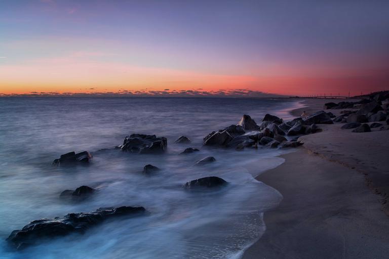 Keywords: seascape coastline beach shore coast landscape sunset sand rocks scenic new jersey sandy hook waves ocean sea nature twilight dusk