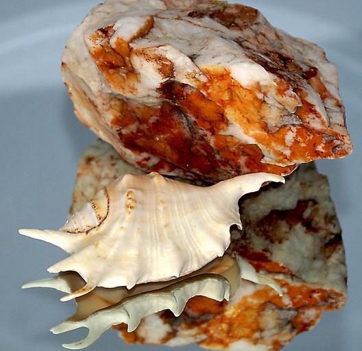 Keywords: seashell rock stone dappled texture invoice shades of infiltrates ferruginous formations minerals limestone calcite iron ore iron compounds empty shell clear shell spikes shells appendages shells reflection quartz illusion fan