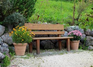 Keywords: seat bank wooden bench bench out sit rest recovery decoration flowers planters beautify beautification nature