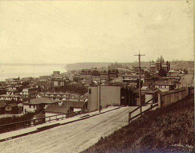 | Keywords: Seattle looking northwest from the King County Courthouse at 7th Ave between Terrace St and Alder St, Seattle, Washington, ca (LAROCHE 71).jpeg  Photograph Creator Frank La Roche Section of 2-part panorama La Roche 1019 1020 Identical to La Roche 124 Subjects LCTGM Cities towns--Washington State ; Streets--Washington State --Seattle; Harbors--Washington State --Seattle Subjects LCSH Seattle Wash ; Photography panoramic--Washington State --Seattle File Panorama of Seattle looking west from the King County Courthouse at 7th Ave between Terrace St and Alder St Seattle Washington LAROCHE 251 jpeg would appear to be a continuation to the left <gallery> File Panorama of Seattle looking west from the King County Courthouse at 7th Ave between Terrace St and Alder St Seattle Washington LAROCHE 251 jpeg File Seattle looking northwest from the King County Courthouse at 7th Ave between Terrace St and Alder St Seattle Washington ca LAROCHE 71 jpeg </gallery> depicted place Seattle Washington ca 1891 Institution University of Washington UWASH-LAROCHE-source accession number laroche 71 PD-old-auto-1923 1936 Information field Order Number LAR010 Views from 1890 King County Courthouse Streets in Seattle Elliott Bay Downtown Seattle Washington Denny Regrade Seattle Washington Magnolia Seattle Washington Washington Hotel Rainier Hotel Central School Seattle Seattle Washington in the 1890s Black and white photographs ImageNote 1 491 181 63 49 639 500 2 Central School ImageNoteEnd 1 ImageNote 2 358 198 50 28 639 500 2 Denny Hotel later Washington Hotel on Denny Hill regraded away less than 20 years later ImageNoteEnd 2 ImageNote 3 261 222 126 40 639 500 2 Rainier Hotel ImageNoteEnd 3 ImageNote 4 42 439 288 55 639 500 2 7th Avenue now completely lost to Interstate 5 ImageNoteEnd 4  |