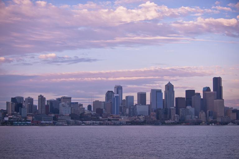 Keywords: seattle wa skyline sunset puget sound skyscrapers downtown cityscape northwest panorama waterfront pacific