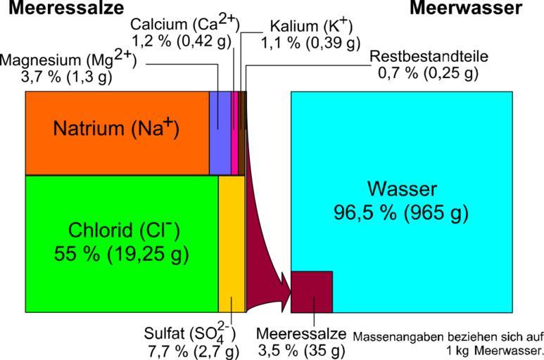 | Keywords: Seawater components.svg en Percental components of seawater de Prozentuale Bestandteile des Meerwassers own Hannes Grobe modified by MarkusZi 2010-01-13 similar same data Raster image German version French version Seawater Oceanographic diagrams SVG diagrams in German |