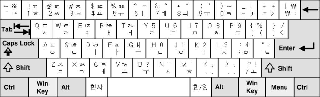 Keywords: Sebeolsik Hangul.png Keyboard layout of Sebolsik Hangul technology CJK keyboard layouts QWERTY keyboard layouts Korean language
