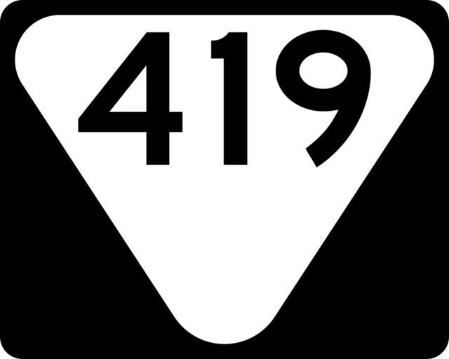 Keywords: Secondary Tennessee 419.svg Tennessee Secondary State Route 419 Self Created using Inkscape Pepper6181 Own work all rights released Public domain Diagrams of Tennessee State Route shields 419 S