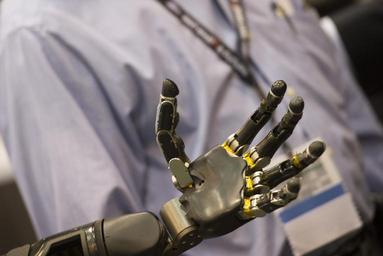 | Keywords: Secretary of defense visits St. Louis 150909-D-DT527-653.jpg en Secretary of Defense Ash Carter not pictured is briefed on the robotic limb exhibit at the Defense Advanced Research Projects Agency Wait What future technology forum at the America's Convention Center Complex in St Louis Mo Sept 9 2015 Photo by Senior Master Sgt Adrian Cadiz Released <br>Unit Office of the Secretary of Defense Public Affairs 2015-09-09 Master Sgt Adrian Cadiz https //www dvidshub net/image/2166579/secretary-defense-visits-st-louis 150909-D-DT527-653 2015-09-09 23 24 ST LOUIS MO US PD-USGov Robot hands Images from DoD uploaded by Fæ |