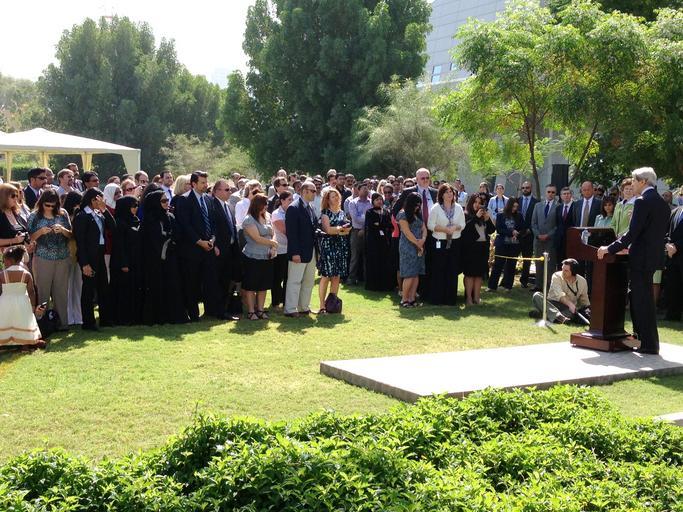 | Keywords: Secretary Kerry Delivers Remarks at Embassy Abu Dhabi's Meet and Greet.jpg en U S Secretary of State John Kerry delivers remarks to the staff and families of the U S Embassy in Abu Dhabi United Arab Emirates on March 5 2013 State Department photo/ Public Domain 2013-03-05 10 39 55 http //www flickr com/photos/statephotos/8532652042/sizes/o/in/photostream/ U S Department of State 24 424333333333 54 434 U S Department of State http //flickr com/photos/9364837 N06/8532652042 2013-03-06 00 51 15 United States Government Work PD-USGov Uploaded with UploadWizard John Kerry in 2013 |