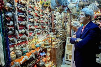 Keywords: Secretary Kerry Examines Khanjar Knives During Visit to Muttrah Souk in Oman.jpg en U S Secretary of State John Kerry looks at a wall of khanjar knives - traditional Omani daggers - during a visit to the Muttrah Souk in Muscat Oman on November 10 2014 during a break in P5+1 negotiations with Iran about the future of its nuclear program State Department photo/ Public Domain 2014-11-10 08 29 33 http //www flickr com/photos/9364837 N06/15755987061/ U S Department of State other versions 23 617531 58 583439 PD-USGov PD-USGov Bilateral relations of the United States Uploaded with UploadWizard