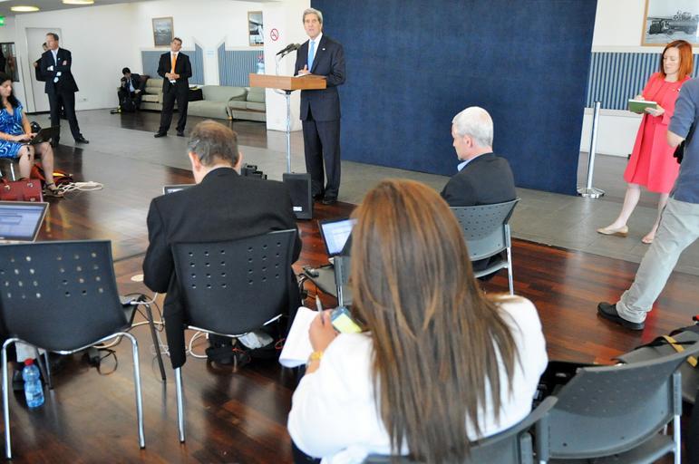 | Keywords: Secretary Kerry Listens as Wafa News Agency and Palestinian TV's Christine Rinawi Asks a Question.jpg en U S Secretary of State John Kerry listens as Christine Rinawi of the Wafa News Agency and Palestinian TV asks him a question during a news conference in Tel Aviv Israel on May 24 2013 State Department photo/ Public Domain 2013-05-24 06 37 57 http //www flickr com/photos/statephotos/8813635534/sizes/o/in/photostream/ http //www state gov http //www state gov http //flickr com/photos/9364837 N06/8813635534 2013-05-24 17 05 24 United States Government Work PD-USGov Uploaded with UploadWizard John Kerry in 2013 |