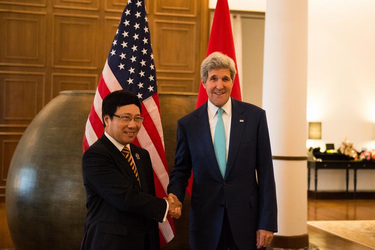 | Keywords: Secretary Kerry Meets Vietnamese Deputy Prime Minister Pham Binh Minh - Flickr - East Asia and Pacific Media Hub.jpg Naypyitaw Burma August 9 2014 U S Secretary of State John Kerry greets Vietnamese Deputy Prime Minister and Foreign Minister Pham Binh Minh before their meeting State Department photo by William Ng/Public Domain https //www flickr com/photos/eapmediahub/14683096919/ Secretary Kerry Meets Vietnamese Deputy Prime Minister Pham Binh Minh 2014-08-09 11 08 https //www flickr com/people/56477391 N06 East Asia and Pacific Media Hub U S Department of State PD-USGov East Asia and Pacific Media Hub https //flickr com/photos/56477391 N06/14683096919 2016-11-27 14 12 37 United States Government Work Files_from_East_Asia_and_Pacific_Media_Hub_U S _Department_of_State_Flickr_stream Files_uploaded_by_Josve05a_ U S _DoS John Kerry in 2014 |