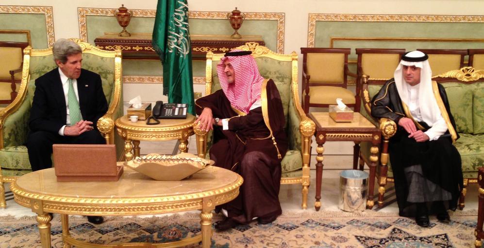 Keywords: Secretary Kerry Meets With Saudi Foreign Minister and Ambassador cropped.jpg en U S Secretary of State John Kerry meets with Saudi Arabian Foreign Minister Saud Al-Faisal and Saudi Arabian Ambassador to the U S Adel al-Jubeir in Riyadh Saudi Arabia on March 3 2013 State Department photo/ Public Domain Cropped by User Andrew Dalby 2013-03-03 20 25 00 http //www flickr com/photos/statephotos/8525825076/sizes/o/in/photostream/ U S Department of State File Secretary Kerry Meets With Saudi Foreign Minister Saud Al-Faisal and Ambassador to the U S Adel al-Jubeir jpg 24 707833333333 46 719166666667 U S Department of State http //flickr com/photos/9364837 N06/8525825076 2013-03-04 05 50 22 United States Government Work PD-USGov John Kerry in 2013 Saud bin Faisal Adel al-Jubeir |