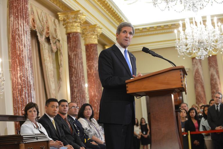 Keywords: Secretary Kerry Releases the 2013 Trafficking in Persons Report (Pic 2).jpg en U S Secretary of State John Kerry releases the 2013 Trafficking in Persons TIP Report and honors the 2013 TIP Report Heroes men and women whose personal efforts have made an extraordinary difference in the global fight against modern slavery at the U S Department of State in Washington D C on June 19 2013 State Department photo/ Public Domain 2013-06-19 16 06 43 http //www flickr com/photos/statephotos/9086367139/sizes/o/in/photostream/ U S Department of State U S Department of State http //flickr com/photos/9364837 N06/9086367139 2013-06-20 05 51 31 United States Government Work PD-USGov Uploaded with UploadWizard John Kerry in 2013 |