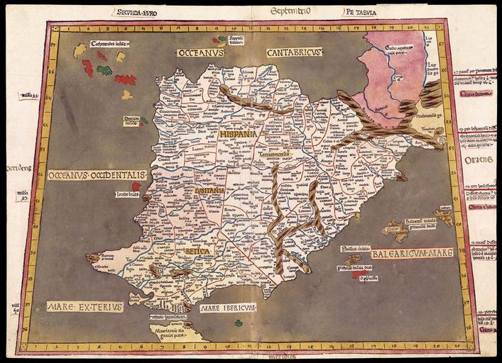 Keywords: Secunda Europe Tabula (1486).jpg en The Second Map of Europe depicting Roman Portugal Lusitania and Spain Betica and Hispania Tarraconensis from Johann Reger's reprint of the Ulm Ptolemy 1486 a reprint from the 1482 plates http //www oshermaps org/search/zoom php no 2 img0 Osher Map Library Ptolemy other versions PD-old-70-1923 Ulm Ptolemy Europe 02 Maps in Latin 1486 maps 1482 maps Ptolemy's 2nd European Map 1486