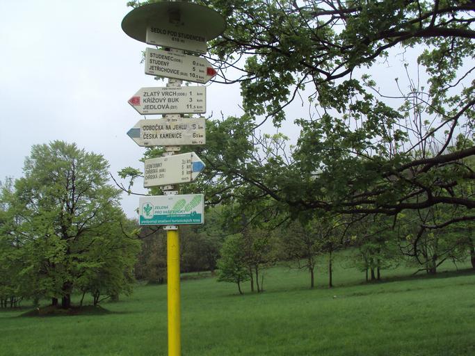 MAKE A MEME View Large Image Sedlo pod Studencem.JPG cs Turistický rozcestník v Sedle pod Studencem severně od Kamenického Šenova own Zákupák 2013-05-15 Hiking and footpath fingerposts in Děčín District CHKO Lužické hory Lusatian Mountains