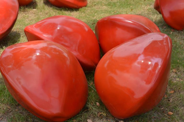 Keywords: seeds sit seating bean parck stone bench modern art red