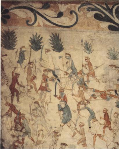 | Keywords: Segesser II hide painting - detail.png en Hide painting sent to Switzerland from Sonora Mexico in 1758 by Philipp Segesser 1 September 1689 - 28 September 1762 depicting European and Plains Indian warriors Assumed to represent the 1720 defeat of the Villasur expedition before 1758 http //digitalcommons unl edu/cgi/viewcontent cgi article 1412 context greatplainsquarterly author PD-Art PD-old-auto Mexico 1758 Uploaded with UploadWizard 1720 History of Nebraska Native American hide painting Pawnee Bison clothing Fur clothing of Pawnee people |