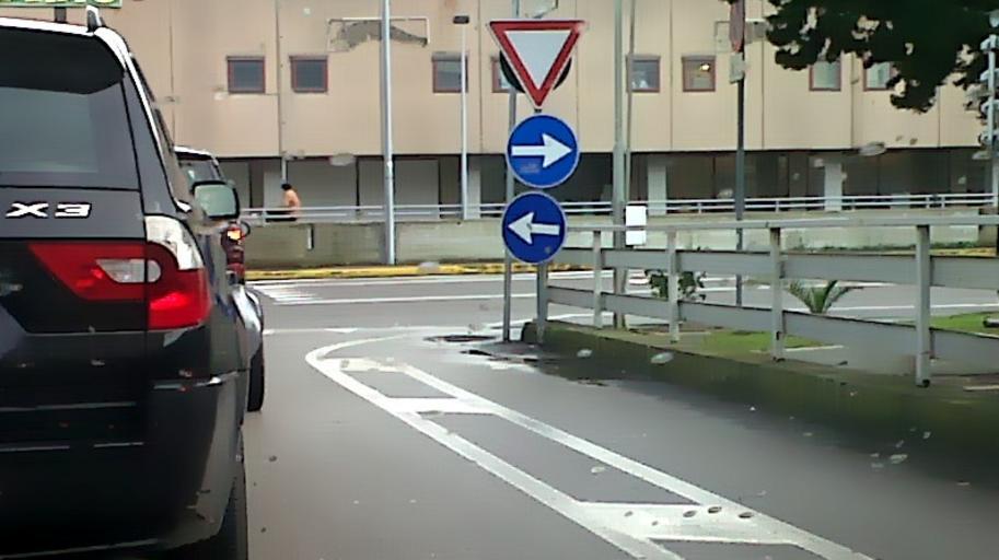 Keywords: Segnaletica verticale errata.jpg en Typical example of signs disorganized Pesaro crossing T between Via Solferino and Via Domenico Cimarosa it Tipico esempio di segnaletica mal organizzata Pesaro incrocio a T tra la via Domenico Cimarosa e via Solferino own A7N8X Cc-zero Road signs in Italy |