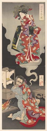 | Keywords: Seigen en Sakurahime-Rijksmuseum RP-P-2007-150.jpeg accession number RP-P-2007-150 Tsukioka Yoshitoshi credit line nl Seigen de abt van de Kiyomizudera tempel omhelst de kimono van zijn gestorven courtisane Sakurahime die als geestverschijning op het bovenste blad zichtbaar is Verticaal diptiek Label Line mentioned on object Tsukioka Yoshitoshi 1839 - 1892 1889 kleurenhoutsnede; lijnblok met kleurblokken Collection prenten; Japan collectie blad Height mm 322 blad Width mm 244 exhibition history 2007-2007 Zomertentoonstelling 2007 CODA Cultuur onder Dak Apeldoorn Apeldoorn paper object history Acquisition 2006 object type prent PD-US PD-old Data and photography rights All data and all images made available through the API are either in the public domain or are subject to a CC0 license https //www rijksmuseum nl/en/api/terms-and-conditions-of-use cc-zero place of creation Japan http //www rijksmuseum nl/collectie/RP-P-2007-150 http //hdl handle net/10934/RM0001 COLLECT 440630 handle Seigen en Sakurahime Uploaded with GWToolset Rijksmuseum RP-P-2007-150 http //www rijksmuseum nl/media/assets/RP-P-2007-150 Images uploaded by Fæ Images from the Rijksmuseum Japanese 19th-century prints in the Rijksmuseum Amsterdam |