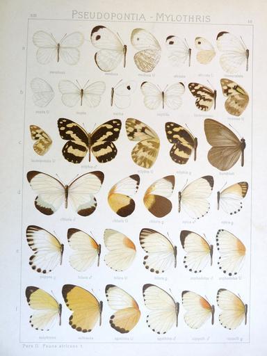 Keywords: SeitzFaunaAfricanaXIIITaf10.JPG SeitzFaunaAfricanaXIIITaf10 10a<br> Leptosia medusa Cramer 1777 <br> Leptosia alcesta Stoll 1782 <br> Leptosia medusa ab immaculata <br> 10b<br> Leptosia nupta Butler 1873 <br> Leptosia narica <br> Leptosia nuptilla <br> Pinacopteryx eriphia Godart 1819 syn Herpaenia lacteipennis Butler 1876 <br> Pinacopteryx eriphia Godart 1819 syn Herpaenia eriphia ab nyassae Lanz <br> 10c<br> Pinacopteryx eriphia Godart 1819 syn Herpaenia lacteipennis Butler 1876 <br> Pinacopteryx eriphia Godart 1819 <br> Mylothris humbloti Oberthür 1888 <br> 10d<br> Mylothris chloris Fabricius 1775 <br> Mylothris spica Möschler 1884 <br> 10e<br> Mylothris poppea Cramer 1777 <br> Mylothris hilara Karsch 1892 syn Mylothris poppea hilara Karsch 1892 <br> Mylothris asphodelus Butler 1887<br> 10f<br> Mylothris sulphurea Aurivillius 1895<br> Mylothris ochracea Aurivillius 1895<br> Mylothris agathina Cramer 1779 <br> Mylothris rueppellii Koch 1865 syn Mylothris rüppelli Koch 1865 <br> 1910 Adalbert Seitz Fauna Africana Adalbert Seitz died 1938 author of plate unknown other versions PD-old-70-1923 Uploaded with UploadWizard The Macrolepidoptera of the World Fauna Africana Leptosia medusa Leptosia alcesta Leptosia nupta Pinacopteryx eriphia Mylothris humbloti Mylothris chloris Mylothris spica Mylothris poppea Mylothris hilara Mylothris asphodelus Mylothris sulphurea Mylothris agathina Mylothris rueppellii |