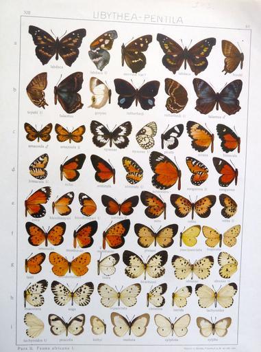| Keywords: SeitzFaunaAfricanaXIIITaf61.JPG en Adalbert Seitz Die Gross-Schmetterlinge der Erde 13 Die Afrikanischen Tagfalter Plate XIII 61 Libythea labdaca Westwood 1851 Libythea labdaca ancoata Grose-Smith 1891 Saribia tepahi Boisduval 1833 Antirrhea geryon C R Felder 1862 Abisara rutherfordi Hewitson 1874 Abisara talantus Aurivillius 1891 Alaena amazoula Boisduval 1847 Alaena nyassa Hewitson 1877 Alaena picata Sharpe 1896 Telipna acraea Westwood 1851 Telipna bimacula Plötz 1880 synonym for Telipna acraea Westwood 1851 echo Grose-Smith Kirby synonym for Telipna acraea Westwood 1851 semirufa Grose-Smith Kirby synonym for Telipna acraea Westwood 1851 Telipna acraeoides Grose-Smith Kirby 1890 Telipna sanguinea Plötz 1880 erica accepted name Telipna erica Suffert 1904 hiendlemayeri accepted name Liptenara hiendlmayeri Aurivillius cornuta nero accepted name Pentila nero Smith Kirby 1894 rotha accepted name accepted name Pentila rotha Hewitson 1873 amenaida accepted name Pentila amenaida Hewitson 1873 Pentila tropicalis mombasae Grose-Smith Kirby 1889 preussi accepted name Pentila preussi Staudinger 1888 paucipunctata synonym of Pentila preussi Staudinger 1888 forma tropicalis accepted name Pentila tropicalis Boisduval 1847 lasti Smith Kirby 1889 dry season form of Pentila tropicalis Boisduval 1847 occidentalium accepted name Pentila occidentalium Aurivillius 1899 laura Kirby 1890 accepted name Pentila hewitsoni Grose-Smith Kirby 1887 hewitsoni accepted name Pentila hewitsoni Smith Kirby 1887 abraxas accepted name Pentila abraxas Westwood 1851 maculata accepted name Pentila maculata Kirby 1887 auga accepted name Pentila auga Karsch 1895 tripunctata Aurivillius 1895 accepted name Pentila abraxas Westwood 1851 christina accepted name Pentila christina Suffert 1904 torrida accepted name Pentila torrida Kirby 1887 tachyroides accepted name Pentila tachyroides Dewitz 1879 peucetia accepted name Ornipholidotos peucetia Hewitson 1866 kirbyi accepted name Ornipholidotos kirbyi Aurivillius 1895 muhata accepted name Ornipholidotos muhata Dewitz 1886 sylpha accepted name Ornipholidotos sylpha Kirby 1890 sylphida accepted name Ornipholidotos sylphida Staudinger 1892 1910 Adalbert Seitz Fauna Africana Adalbert Seitz died 1938 author of plate unknown other versions PD-old-70-1923 Uploaded with UploadWizard The Macrolepidoptera of the World Fauna Africana Libythea labdaca Saribia tepahi Antirrhea geryon Abisara rutherfordi Abisara talantus Alaena amazoula Alaena nyassa Alaena picata Telipna acraea Telipna acraeoides Telipna sanguinea Pentila Telipna erica Liptenara hiendlmayeri Pentila nero Pentila rotha Pentila amenaida Pentila preussi Pentila tropicalis Pentila occidentalium Pentila hewitsoni Pentila abraxas Pentila maculata Pentila auga Pentila christina Pentila torrida Pentila tachyroides Ornipholidotos peucetia Ornipholidotos kirbyi Ornipholidotos muhata Ornipholidotos sylpha Ornipholidotos sylphida |