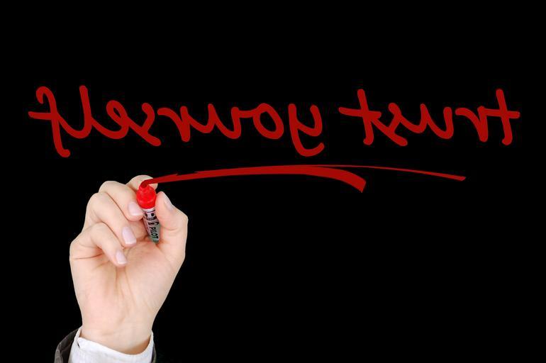 Keywords: self confidence confidence twisted mirrored pen mark marker hand trust sense of self self safety self-confidence leave company business certainty faith believe hope security
