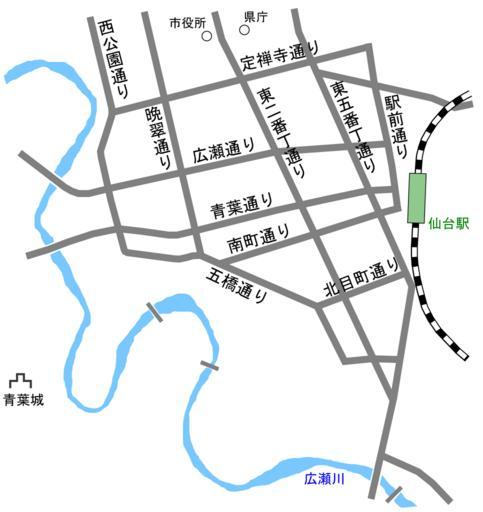 Keywords: Sendai City major streets.svg en Map of Sendai_City Japan ja 仙台市中心部 図 主要街路名称 Sendai Miyagi