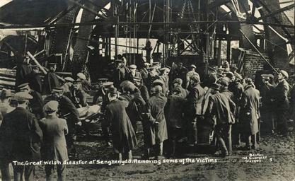 Keywords: Senghenydd pit disaster 1.jpg en Removing some of the victims 1913-10 Institution National Library of Wales W Benton User Llywelyn2000/NLW/Credit Template CC-zero other versions 51 6063 -3 2793 <br/> <br/> Senghennydd mine disaster Images uploaded as part of NLW - WMUK collaboration Coal mines in Wales Senghennydd mine disaster postcards from NLW Uploaded with UploadWizard |