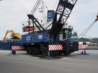 Keywords: Sennebogen 6180 harbor crane at VEJLE habor, pic3.JPG Photographed in Vejle Denmark own 2013-06-15 09 51 06 Alf van Beem CC-Zero Vejle harbor Other photographs by Alf van Beem