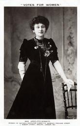 | Keywords: the women's library thewomenslibrary hires people monochrome photo border TWL.2002.11Postcard, printed, cardboard, monochrome photographic studio portrait of Maud Arncliffe-Sennett, white border, full-length, hand resting on a chair, printed inscription front: 'VOTES FOR WOMEN. MRS. ARNCLIFFE-SENNETT. MEMBER OF NATIONAL EXECUTIVE COMMITTEE WOMEN'S FREEDOM LEAGUE, 1, ROBERT STREET, ADELPHI, LONDON, WC', printed inscription reverse: 'Published by THE LONDON COUNCIL OF THE WOMEN'S FREEDOM LEAGUE, 1, Robert Street, Adelphi, WC'. TWL.2002.11Postcard, printed, cardboard, monochrome photographic studio portrait of Maud Arncliffe-Sennett, white border, full-length, hand resting on a chair, printed inscription front: 'VOTES FOR WOMEN. MRS. ARNCLIFFE-SENNETT. MEMBER OF NATIONAL EXECUTIVE COMMITTEE WOMEN'S FREEDOM LEAGUE, 1, ROBERT STREET, ADELPHI, LONDON, WC', printed inscription reverse: 'Published by THE LONDON COUNCIL OF THE WOMEN'S FREEDOM LEAGUE, 1, Robert Street, Adelphi, WC'. |