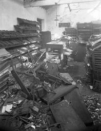 Keywords: waterford news waterfordnews newspaper news office newsoffice fire caseroom type september 1923 1920s poole collection poolecollection glass negative glassnegative a.h. poole ahpoole arthur henri poole arthurhenripoole national library of ireland nationallibraryofireland location identified locationidentified waterford o'connell street oconnellstreet blackandwhite monochrome outdoor black and white The offices of the Waterford News in the aftermath of a fire on Sunday, 26 August 1923. On the same day that this photo was taken, the Irish Times reported: "On Sunday night the offices of the Waterford News, whose policy latterly has been markedly Republican, were burned down. The commercial and editorial offices, the latter containing many valuable historical books and records of Waterford County and City, as well as stores containing hundreds of pounds worth of paper, were completely destroyed. The Civic Guards were quickly on the scene, with members of the newspaper staff. The City Fire Brigade succeeded in saving all the machinery and type. The damage, however, is estimated at several thousands, and is not wholly covered by insurance." Unsure of the location of the Waterford News at this time, so if anyone knows, please speak up... Date: 1 September 1923 NLI Ref.: P_WP_3120 The offices of the Waterford News in the aftermath of a fire on Sunday, 26 August 1923. On the same day that this photo was taken, the Irish Times reported: "On Sunday night the offices of the Waterford News, whose policy latterly has been markedly Republican, were burned down. The commercial and editorial offices, the latter containing many valuable historical books and records of Waterford County and City, as well as stores containing hundreds of pounds worth of paper, were completely destroyed. The Civic Guards were quickly on the scene, with members of the newspaper staff. The City Fire Brigade succeeded in saving all the machinery and type. The damage, however, is estimated at several thousands, and is not wholly covered by insurance." Unsure of the location of the Waterford News at this time, so if anyone knows, please speak up... Date: 1 September 1923 NLI Ref.: P_WP_3120 |