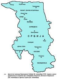| Keywords: Serbia1918 2.png English de facto borders of the Kingdom of Serbia in November 26 1918 after unification with Syrmia November 24 Banat Bačka and Baranja November 25 and Montenegro November 26 - Serbian language version <br>Serbian фактичке г анице К аљевине С бије 26 новемб а 1918 године после уједињења са С емом 24 новемб а Банатом Бачком и Ба ањом 25 новемб а и Ц ном Го ом 26 новемб а - ве зија на с пском језику own 2012 PANONIAN Cc-zero References Published references Drago Njegovan Prisajedinjenje Vojvodine Srbiji Novi Sad 2004 Drago Njegovan Prisajedinjenje Srema Banata Bačke i Baranje Srbiji 1918 - dokumenti i prilozi Novi Sad 2001 Lazo M Kostić Srpska Vojvodina i njene manjine Novi Sad 1999 Dimitrije Boarov Politička istorija Vojvodine Novi Sad 2001 Dr Tomislav Bogavac Nestajanje Srba Niš 1994 Čedomir Popov - Jelena Popov Autonomija Vojvodine - srpsko pitanje Sremski Karlovci 2000 Rade Šumonja Spomenica oslobođenja Sombora 1918-1998 Sombor 1998 Internet references http //terkepek adatbank transindex ro/kepek/netre/167 gif Map http //www historyonmaps com/BWSamples/Demarkacio htm Map http //www lemontree hu/egyebkep/linkkep/history/map/XX_szazad/1918-1938_balkan gif Map Maps of the Kingdom of Serbia Serbia1918012 Banat Bačka and Baranja Serbia1918012 Maps of Serbia during World War I Serbia1918012 Maps of the history of Vojvodina Serbia1918012 Maps of the history of Syrmia Serbia1918012 Maps of the history of Montenegro in modern times Serbia1918012 Maps in Serbian |