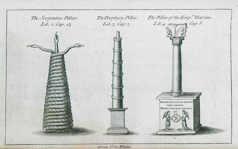 | Keywords: Serpent Column, Constantine's column, Marcian's column - Sr. G. Wheler, Constantinople, 1729.jpg  el Ανα αράσταση του 1729 των μνημείων του Ι  οδρόμου στην Κωνσταντινού ολη Α ό αριστερά  ρος τα δεξιά ο Τρικαρηνός Όφις η στήλη του Κωνσταντίνου και ο κίονας του  αρκιανού en 1784 depiction of the monuments at the Hippodrome of Constantinople From right to left the Serpent Column Constantine's column and Marcian's column 1729 http //el travelogues gr/item php view 46730 Sr G Wheler other versions Original source GILLES Pierre The antiquities of Constantinople London John Ball 1729 Custom license marker 2015 11 08 PD-old-100 PD-US-unpublished Hippodrome of Constantinople Serpent Column in art Column of Constantine Column of Marcian Uploaded with UploadWizard |