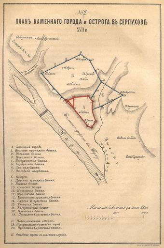 | Keywords: Serpukhov Kremlin XVII.jpg План каменного го ода и ост ога в Се пухове XVII века Симсон П Исто ия Се пухова в связи с Се пуховским княжеством и вообще с отечественною исто иею 1880 1880 Симсон П PD-old original upload log ru wikipedia MadMadDog page ru wikipedia Serpukhov_Kremlin_XVII jpg 2006-12-10 10 58 Се гей Бонда енко 798×1200× 303027 bytes <nowiki> Изоб ажение азвание План каменного го ода и ост ога в Се пухове XVII века Описание План каменного го ода и ост ога в Се пухове </nowiki> Serpukhov Kremlin Landmarks in Russia Old maps of cities of the Russian Empire Serpukhov Maps of Serpukhov |